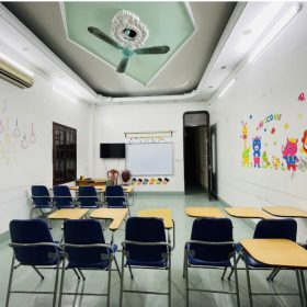 Bàn ghế, bảng trắng, cách trang trí đều được thiết kế riêng phù hợp với độ tuổi của học viên nhằm mang đến môi trường học tập thoải mái và an toàn nhất.